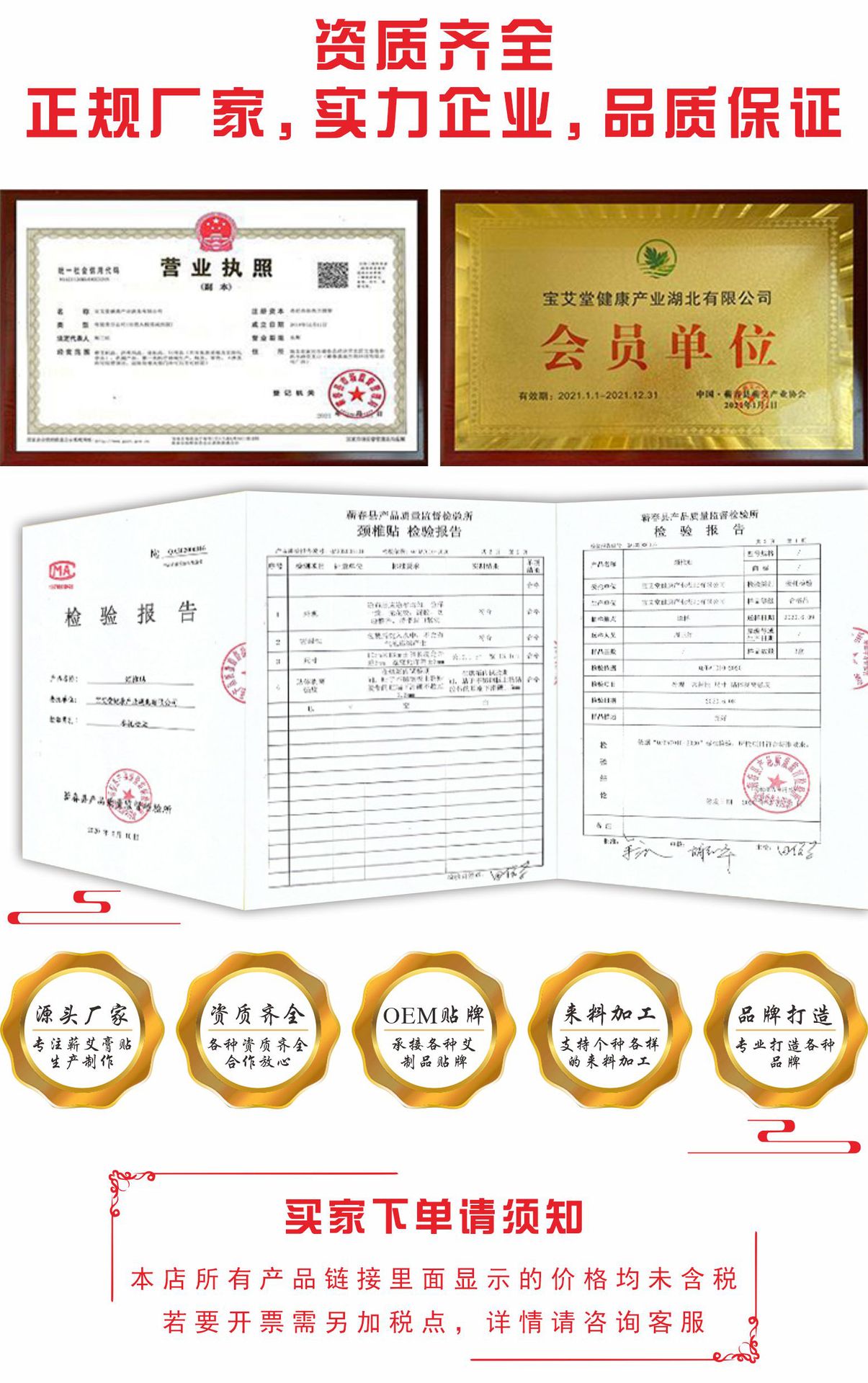本网页所展示的有关【艾灸贴颈椎腰椎自发热无烟热敷艾贴艾草精油温灸贴湖北蕲艾 贴批发_基础保健_宝艾堂健康产业湖北有限公司】的信息/图片/参数等由国民保健网的会员【宝艾堂健康产业湖北有限公司】提供,由国民保健网会员【宝艾堂健康产业湖北有限公司】自行对信息/图片/参数等的真实性、准确性和合法性负责,本平台(本网站)仅提供展示服务,请谨慎交易,因交易而产生的法律关系及法律纠纷由您自行协商解决,本平台(本网站)对此不承担任何责任。您在本网页可以浏览【艾灸贴颈椎腰椎自发热无烟热敷艾贴艾草精油温灸贴湖北蕲艾 贴批发_基础保健_宝艾堂健康产业湖北有限公司】有关的信息/图片/价格等及提供【艾灸贴颈椎腰椎自发热无烟热敷艾贴艾草精油温灸贴湖北蕲艾 贴批发_基础保健_宝艾堂健康产业湖北有限公司】的商家公司简介、联系方式等信息。