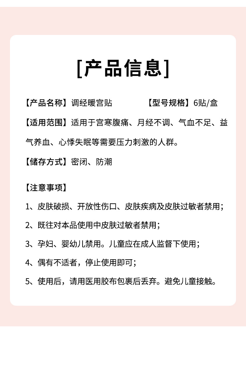 本网页所展示的有关【暖宫贴厂家 械字号砭贴调理女性大姨妈宫寒疼痛贴自发热调经暖贴_女性保健品_安徽彝祖世家药业有限公司】的信息/图片/参数等由国民保健网的会员【安徽彝祖世家药业有限公司】提供,由国民保健网会员【安徽彝祖世家药业有限公司】自行对信息/图片/参数等的真实性、准确性和合法性负责,本平台(本网站)仅提供展示服务,请谨慎交易,因交易而产生的法律关系及法律纠纷由您自行协商解决,本平台(本网站)对此不承担任何责任。您在本网页可以浏览【暖宫贴厂家 械字号砭贴调理女性大姨妈宫寒疼痛贴自发热调经暖贴_女性保健品_安徽彝祖世家药业有限公司】有关的信息/图片/价格等及提供【暖宫贴厂家 械字号砭贴调理女性大姨妈宫寒疼痛贴自发热调经暖贴_女性保健品_安徽彝祖世家药业有限公司】的商家公司简介、联系方式等信息。