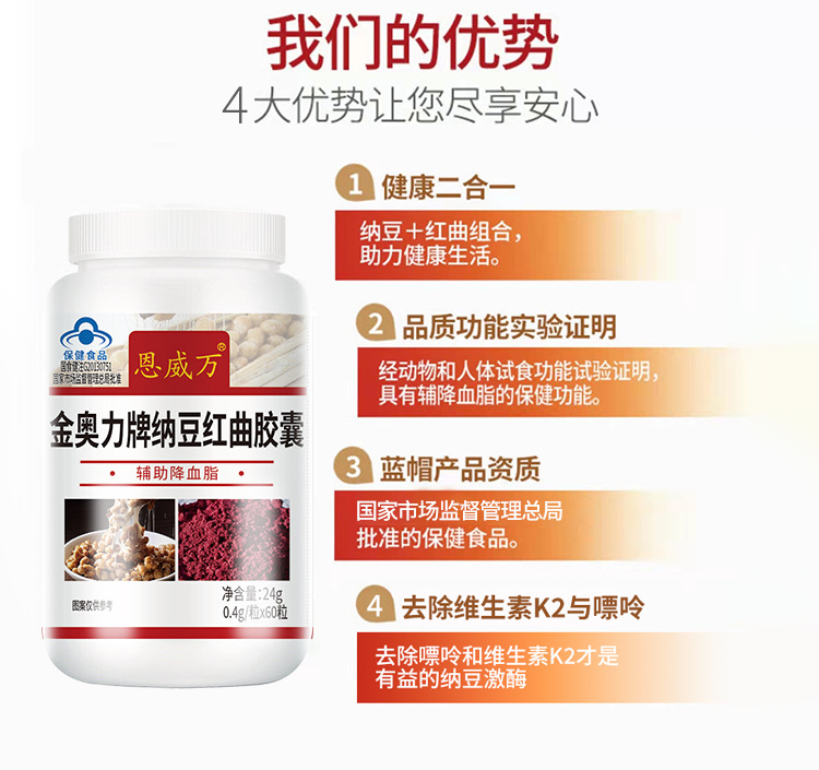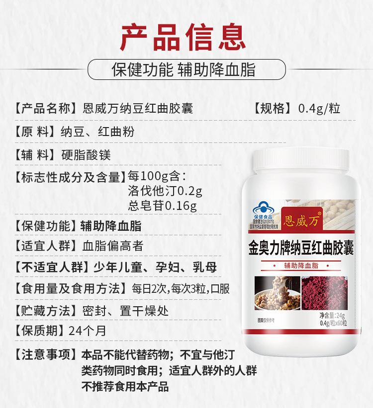本网页所展示的有关【金奥力纳豆激酶红曲胶囊辅助降血脂60粒可与清栓心脑血管产品同用_心脑血管_深圳中健电子商务有限公司】的信息/图片/参数等由国民保健网的会员【深圳中健电子商务有限公司】提供,由国民保健网会员【深圳中健电子商务有限公司】自行对信息/图片/参数等的真实性、准确性和合法性负责,本平台(本网站)仅提供展示服务,请谨慎交易,因交易而产生的法律关系及法律纠纷由您自行协商解决,本平台(本网站)对此不承担任何责任。您在本网页可以浏览【金奥力纳豆激酶红曲胶囊辅助降血脂60粒可与清栓心脑血管产品同用_心脑血管_深圳中健电子商务有限公司】有关的信息/图片/价格等及提供【金奥力纳豆激酶红曲胶囊辅助降血脂60粒可与清栓心脑血管产品同用_心脑血管_深圳中健电子商务有限公司】的商家公司简介、联系方式等信息。